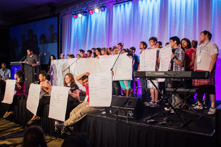 Young people enthusiastically joined their voices in song many times throughout the conference. Spirits were uplifted by energetic artistic performances including beat boxing, a vocal art that mimics the sounds and rhythms of drum beats; a Creole call-and-response song about truthfulness; a bluegrass style song by Alabama youth; and a rendition of the gospel piece “Amazing Grace”.
