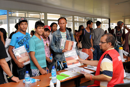 • Friends registering and collecting conference materials