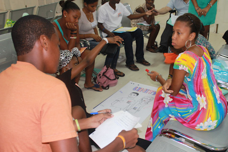 Over 250 young people from the Bahamas, Barbados, Dominica, Grenada, Guadeloupe, Jamaica, Leeward Islands, Martinique, St. Lucia, St. Vincent and the Grenadines, and the Virgin Islands came together in an atmosphere full of excitement to consult on their role in contributing to the life of their communities. “I think it is really great to see all of the countries cooperating even though we don’t know each other,” shared one youth from Jamaica on the first day, “I have been talking to people and we don’t even speak the same language.”