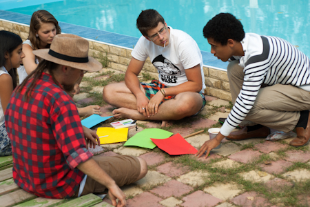 One of the workshop groups exploring the materials together