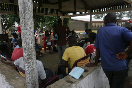 Some groups studied outside under the shade of trees