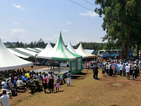 The large turnout was reflective of the community building process being well advanced in numerous villages and towns in this region. In the Matunda Soy area alone, there are over 2,000 adults, youth, and children participating in community activities organized by the Bahá’í community in some 15 villages. Matunda Soy was designated by the Universal House of Justice as one of the first locations around the world for the construction of a local House of Worship. This structure combines two inseparable aspects of Bahá’í life: worship and service. Through the spiritual forces released by the House of Worship, and the conscious exertions to serve humanity made by those around it, can be generated the necessary forces to overcome obstacles facing the community.