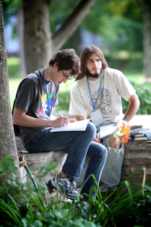 Some groups studied outside on the lush grounds