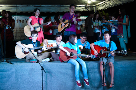 One group from Singapore shares a song with fellow participants