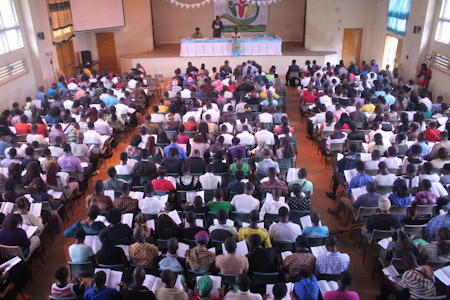 Lying at the heart of Cameroon, the capital city welcomed over 600 youth, from within the borders of that country and from neighbouring Equatorial Guinea and Gabon, who were eager to think about the positive influence their generation can exert on the fortunes of humanity. Excitement was palpable, and singing filled the main hall for twenty minutes before the start of the official program.